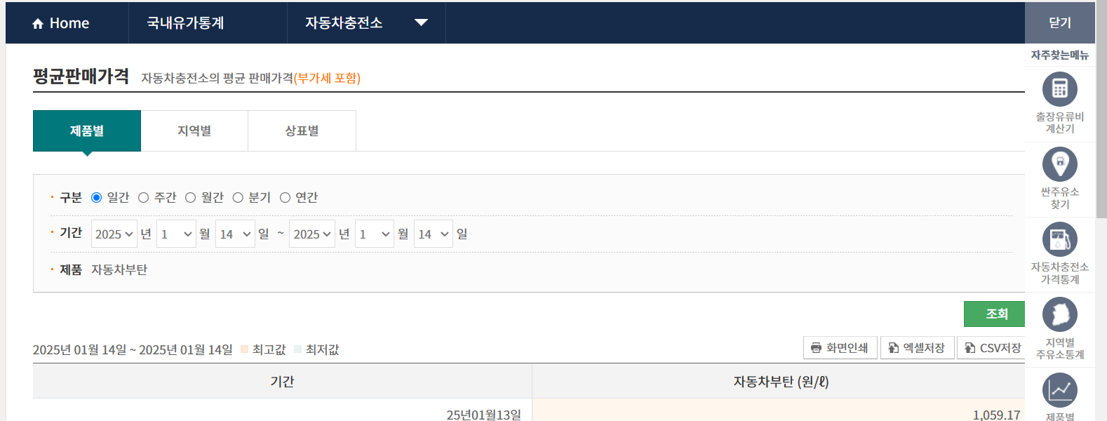 지역별 가격 검색: 시군구를 선택하여 해당 지역의 주유소 가격을 확인할 수 있습니다.