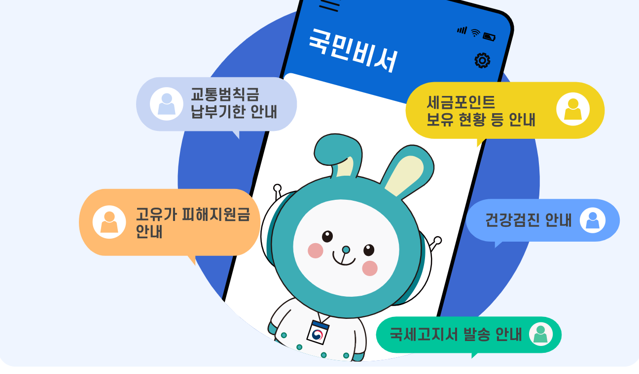 건강검진, 세금, 교통, 각종 지원금 등 다양한 행정 정보를 받을 수 있습니다.