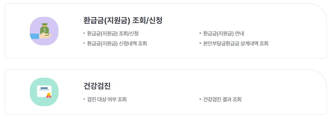 - 본인의 건강검진 대상 여부 및 검진 항목을 확인할 수 있습니다.